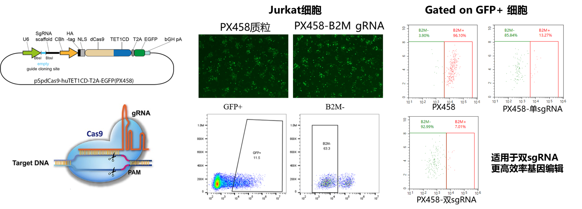 北生所免疫实验室的需求验证:CRRISPR-gRNA all-in-one大质粒能够转染难转染细胞系,并有效敲除B2M基因